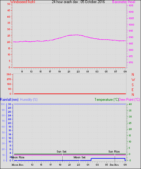 Maximum gust speed = 0.0 km/h from 00°( N ) on day 30 at time 09:00